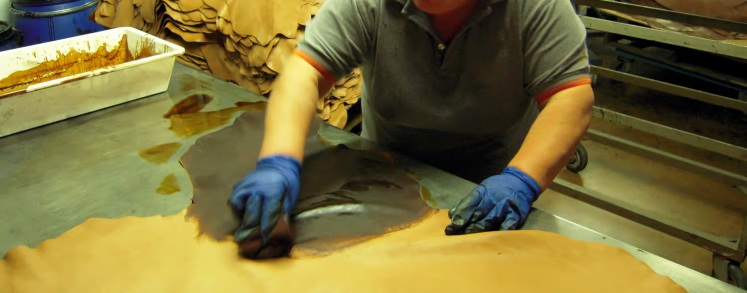 Leather tanning is the process that transforms raw hides into strong, durable leather. It is carried out by cleaning and treating the hides with tanning agents (vegetable, mineral, or synthetic) that stabilize the protein fibers. Finally, they are finished with coloring, greasing, and polishing to achieve the desired appearance and characteristics.