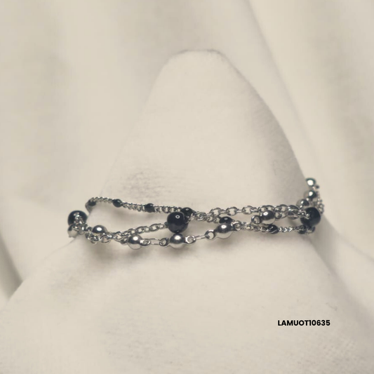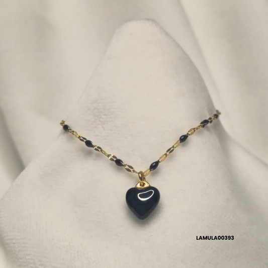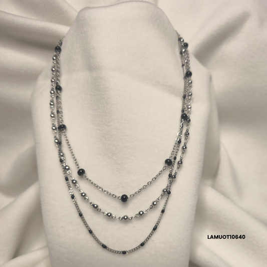 Gold-plated stainless steel necklace with small black enamelled spheres – 40 cm
