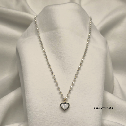 Gold-plated stainless steel necklace with white pearls and natural shell heart pendant