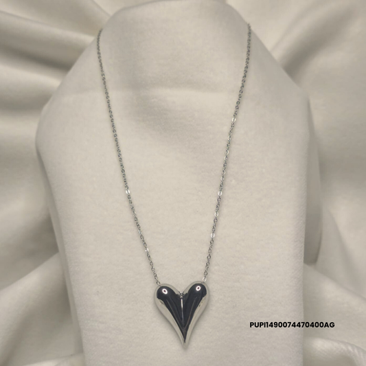 Large Silver Heart Steel Necklace – 316L Stainless Steel