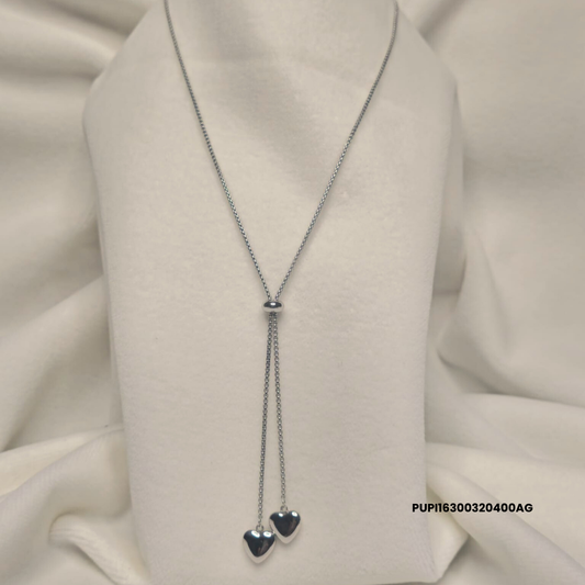 Adjustable 316L Stainless Steel Necklace with Two Heart Pendants
