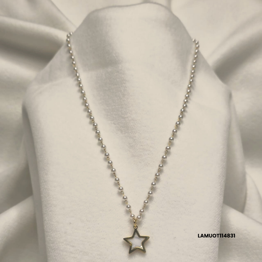 Double chain necklace in gold-plated steel with freshwater pearl and star charm