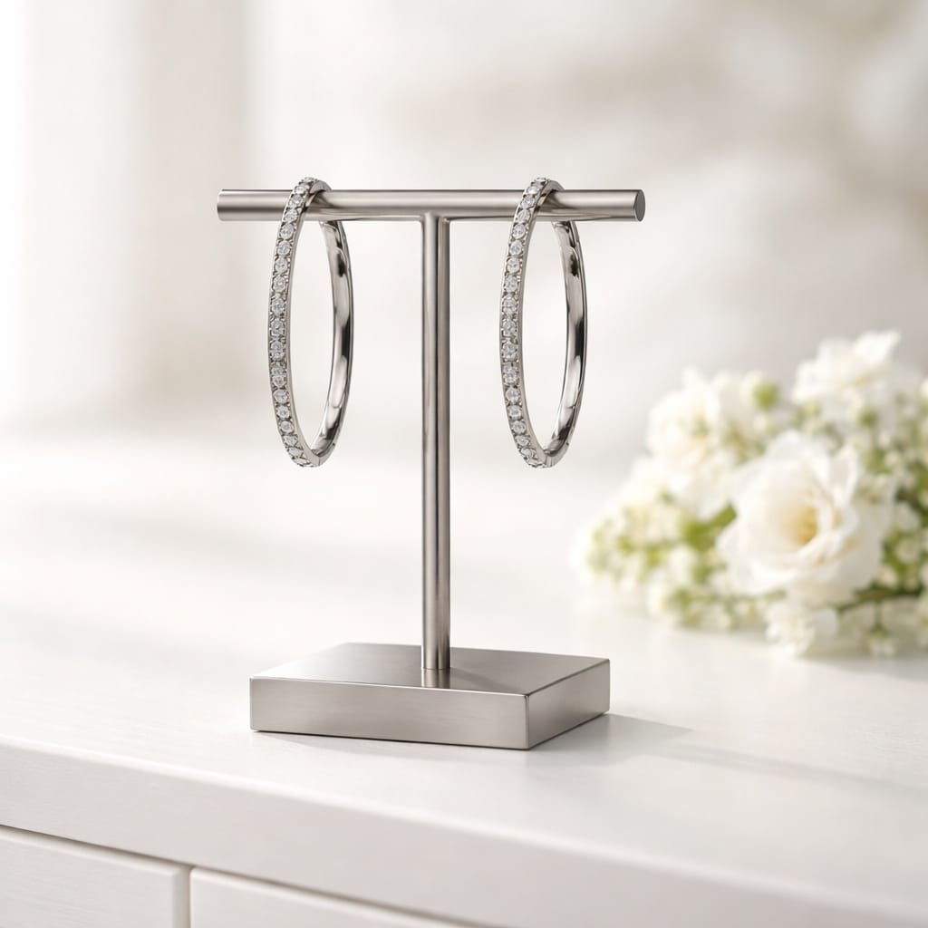 Estos refinados pendientes de aro combinan el brillo de las piedras brillantes con el diseño esencial del acero. La parte frontal del aro está adornada con una hilera de brillantes circonitas que aportan un toque de luz sofisticado y discreto, ideal para realzar cualquier look. Fabricados en acero inoxidable, son duraderos, ligeros y están diseñados para el día a día sin perder su brillo. Su estilo moderno y minimalista los hace perfectos tanto para looks elegantes como informales, añadiendo siempre un toque chic y femenino.
