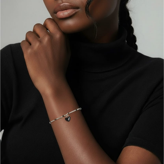 Bracciale in acciaio inossidabile con ciondolo a forma di cuore smaltato nero