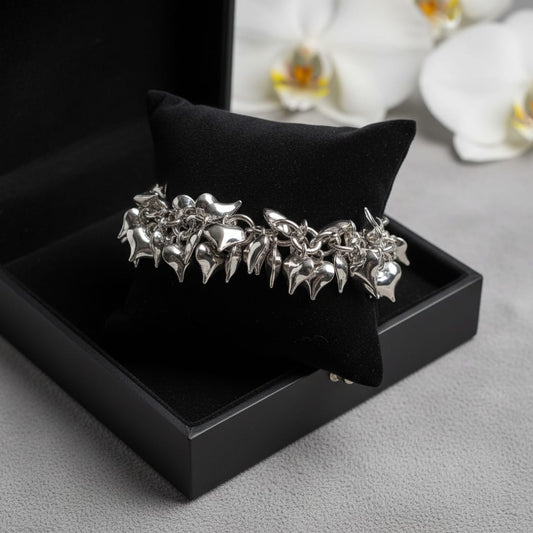 BRACCIALE MILLE CUORICINI IN ACCIAIO COLOR ARGENTO CON SONAGLIO