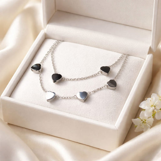 RISPARMIA 50%Bracciale doppio filo con cuori in acciaio
