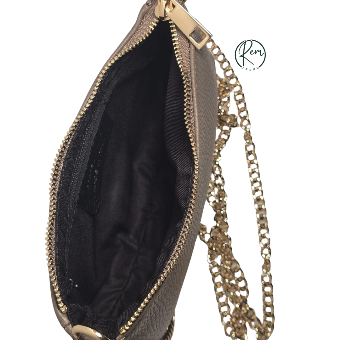 Small, chic, and versatile — the Fiorina bag is crafted in Italy from soft genuine leather and features a refined gold chain strap. Lightweight yet functional with an inner pocket and sleek design, it’s the perfect choice for both day and night looks.